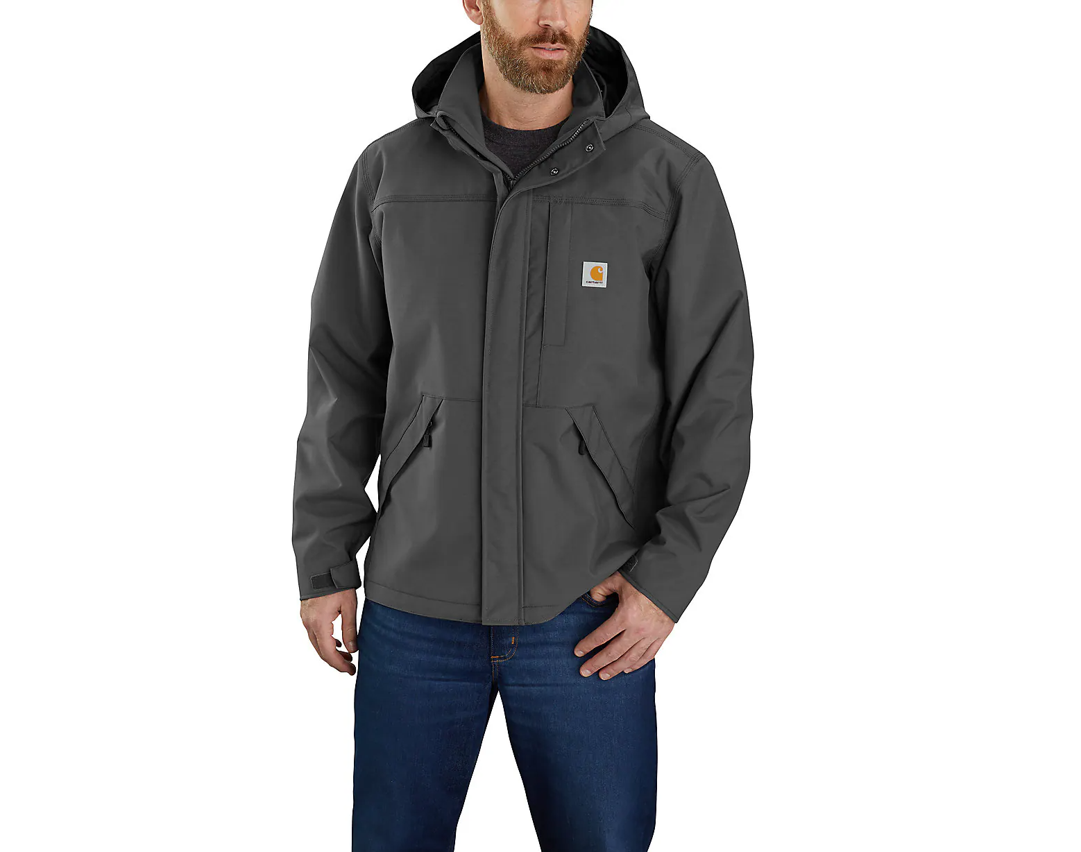 Work doesn't stop for thunderstorms or rain showers. This men's jacket is made to stand up to the weather so you can get the job done. Waterproof and breathable thanks to Storm Defender®, it keeps the rain out but lets sweat escape. A detachable hood and an adjustable droptail hem provide full coverage. The loose fit gives you plenty of room for layering.