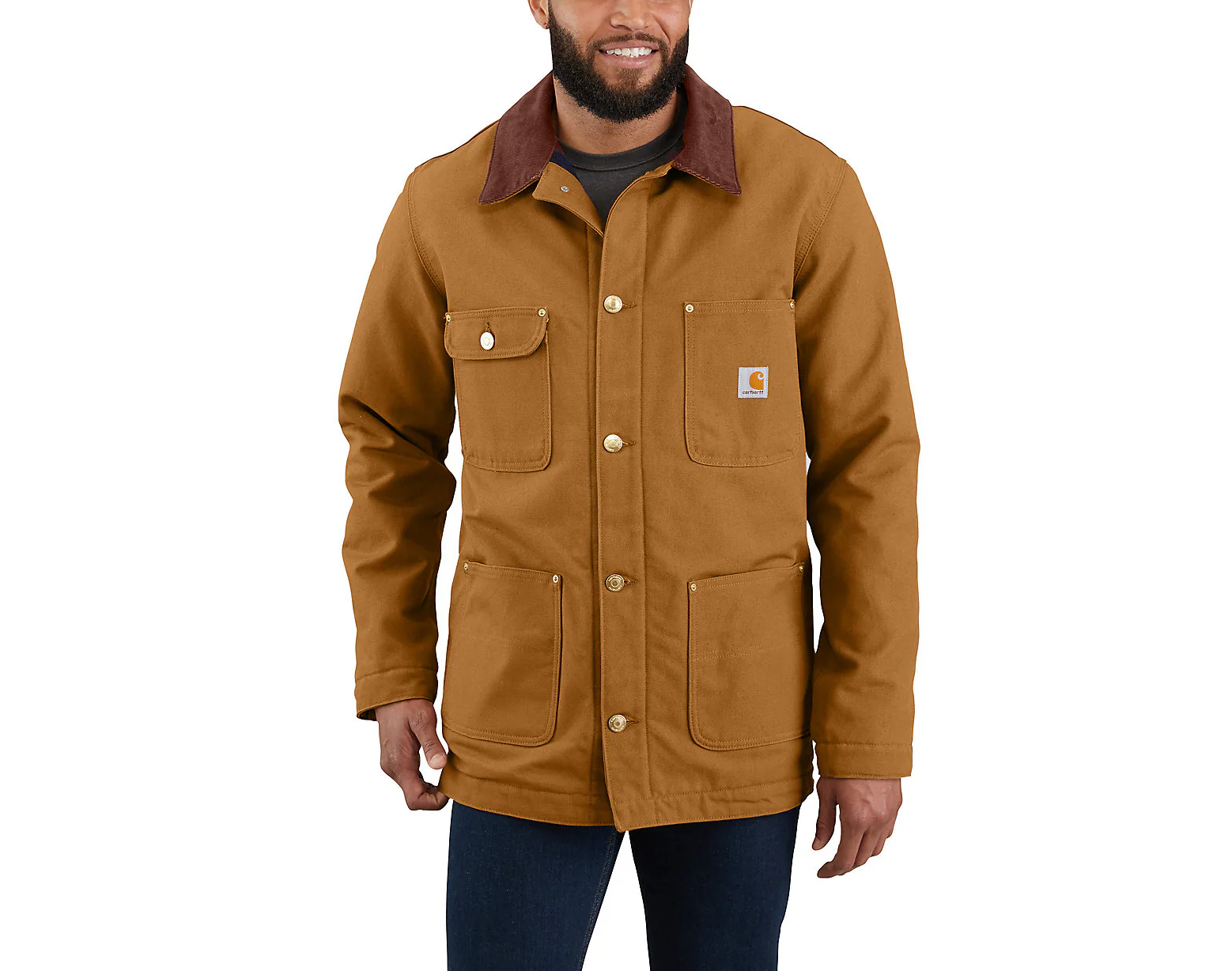 Through the rise and fall of different trends, the Chore Coat remains a classic. From the pocket watch to the wristwatch to the phone, new technologies call for adaptations in design. But through it all its looks stay rooted in heritage. This men's heavyweight coat has a blanket-lined construction that's water-repellent, wind-resistant, and warm. The signature corduroy collar is the same as it was in the late 1930s, and the rugged firm-hand duck fabric only gets better with time.