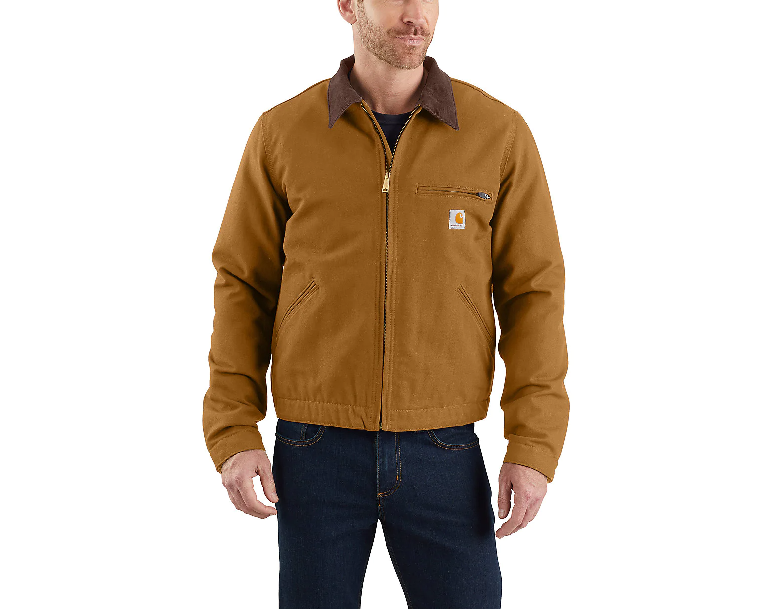 The Detroit Jacket built a reputation for toughness on the backs of warehouse workers, farmhands, and ranchers across America. This men's jacket is made of cotton duck that's rugged and durable. It has a warm blanket lining down the body with smooth quilted nylon through the sleeves. The droptail hem provides extra coverage but leaves enough room for your tool belt.