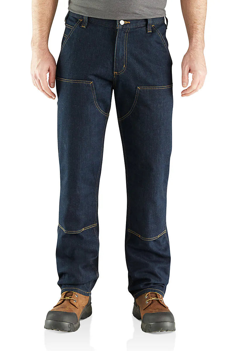 Double-layer knees give these men's logger jeans the durability you expect. Utility pockets plus a hammer loop keep small tools close at hand. Their loose fit is our most generous cut for plenty of room to move.