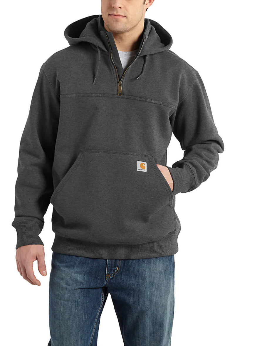 Don't let a little wet weather slow you down. This men's heavyweight hoodie gives you the familiar comfort of a favorite sweatshirt with the added benefit of keeping you dry in light rain. There's a hidden security pocket inside the handwarmer pocket in the front. Previously known as the Rain Defender® Paxton Heavyweight Hooded Zip Mock Sweatshirt