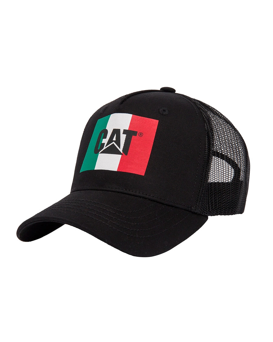 Our Mexico Flag Cap is made for those who embrace style and heritage. Key features include a center front print showcasing the iconic Mexican Flag Cat Logo Graphic, a sleek curved bill, and a convenient snap-back closure for a perfect fit.