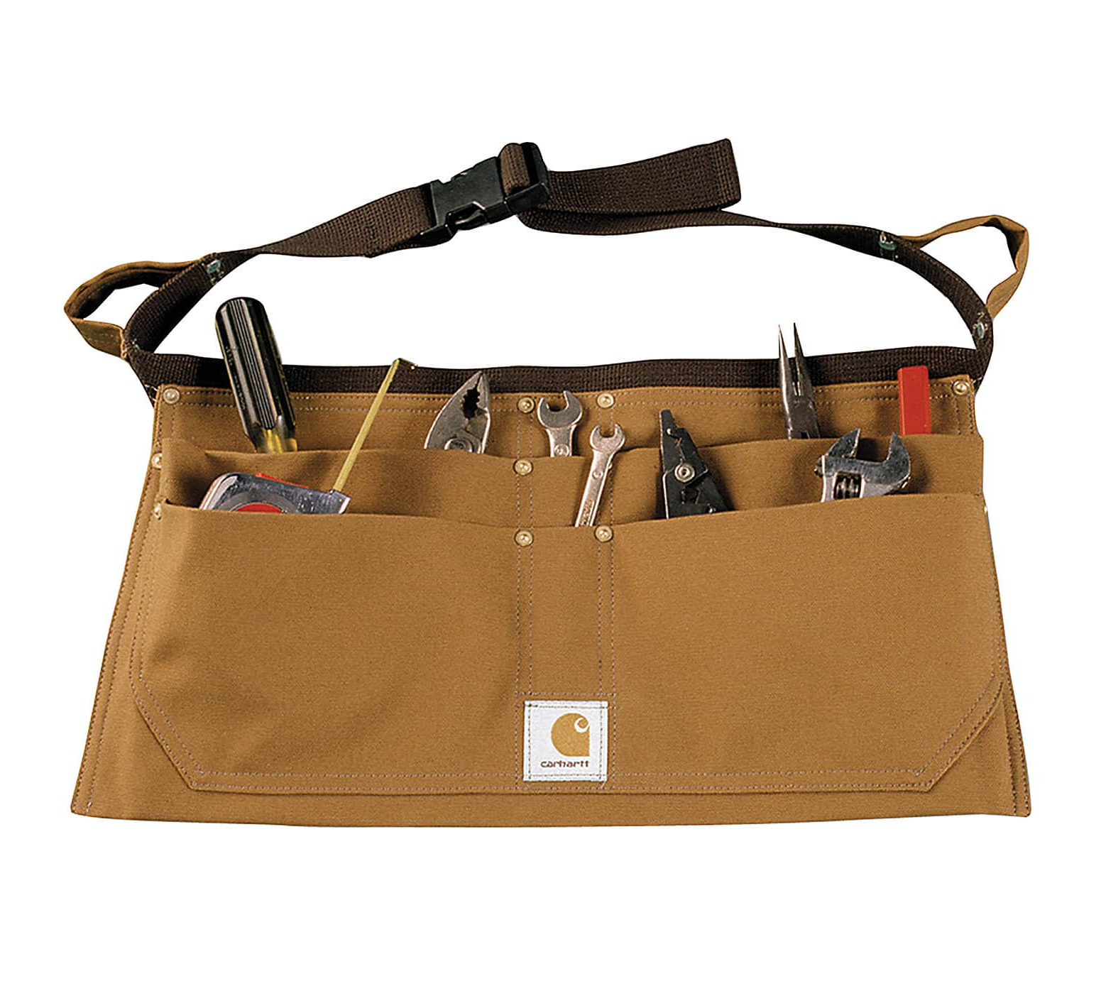 Keep your tools close at hand. This nail apron is made with heavyweight firm-hand duck, the most durable canvas out there. It has four large pockets to hold your nails, screws, and small hand tools, plus there are two utility loops on the strap.