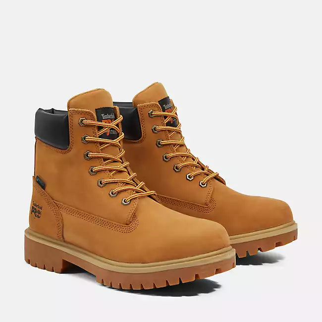 Inspired by our original yellow boots, these Timberland PRO® Direct Attach boots are waterproof and have 200 grams of insulation to keep you dry and warm in cold-weather environments. From their seam-sealed, Premium Timberland® waterproof leather uppers with comfortable padded collars to their heat-, oil-, slip-, and abrasion-resistant rubber lug outsoles for enhanced traction, these soft-toe boots are ready to get to work. We also added electrical hazard protection and Anti-Fatigue Technology polyurethane footbeds for all-day shock absorption and energy return, plus breathable, moisture-wicking linings made of ReBOTL™ fabric containing at least 50% recycled plastic.