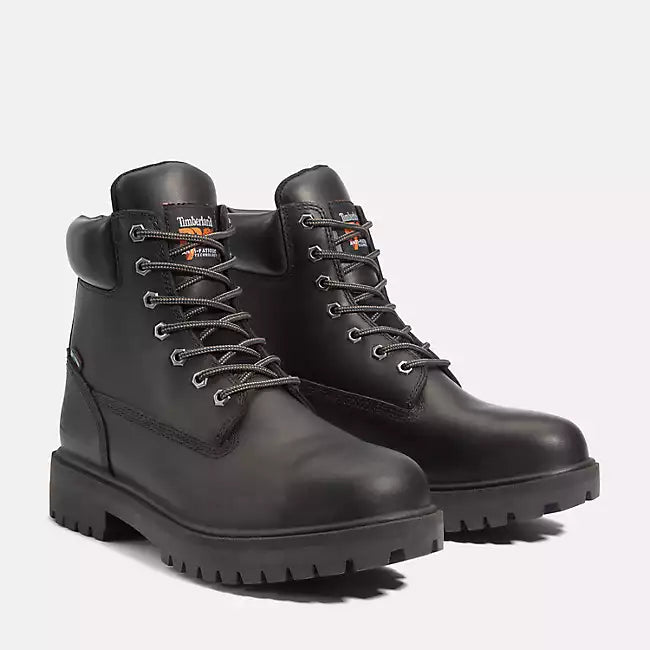 Inspired by our original yellow boots, these Timberland PRO® Direct Attach boots are waterproof and have 200 grams of insulation to help keep you dry and warm in cold-weather environments. From their seam-sealed, Premium Timberland® waterproof leather uppers with comfortable padded collars to their heat-, oil-, slip-, and abrasion-resistant rubber lug outsoles for enhanced traction, these steel safety-toe boots are ready to get to work. We also added electrical hazard protection and Anti-Fatigue Technology polyurethane footbeds for all-day shock absorption and energy return, plus breathable, moisture-wicking linings made of ReBOTL™ fabric containing at least 50% recycled plastic.