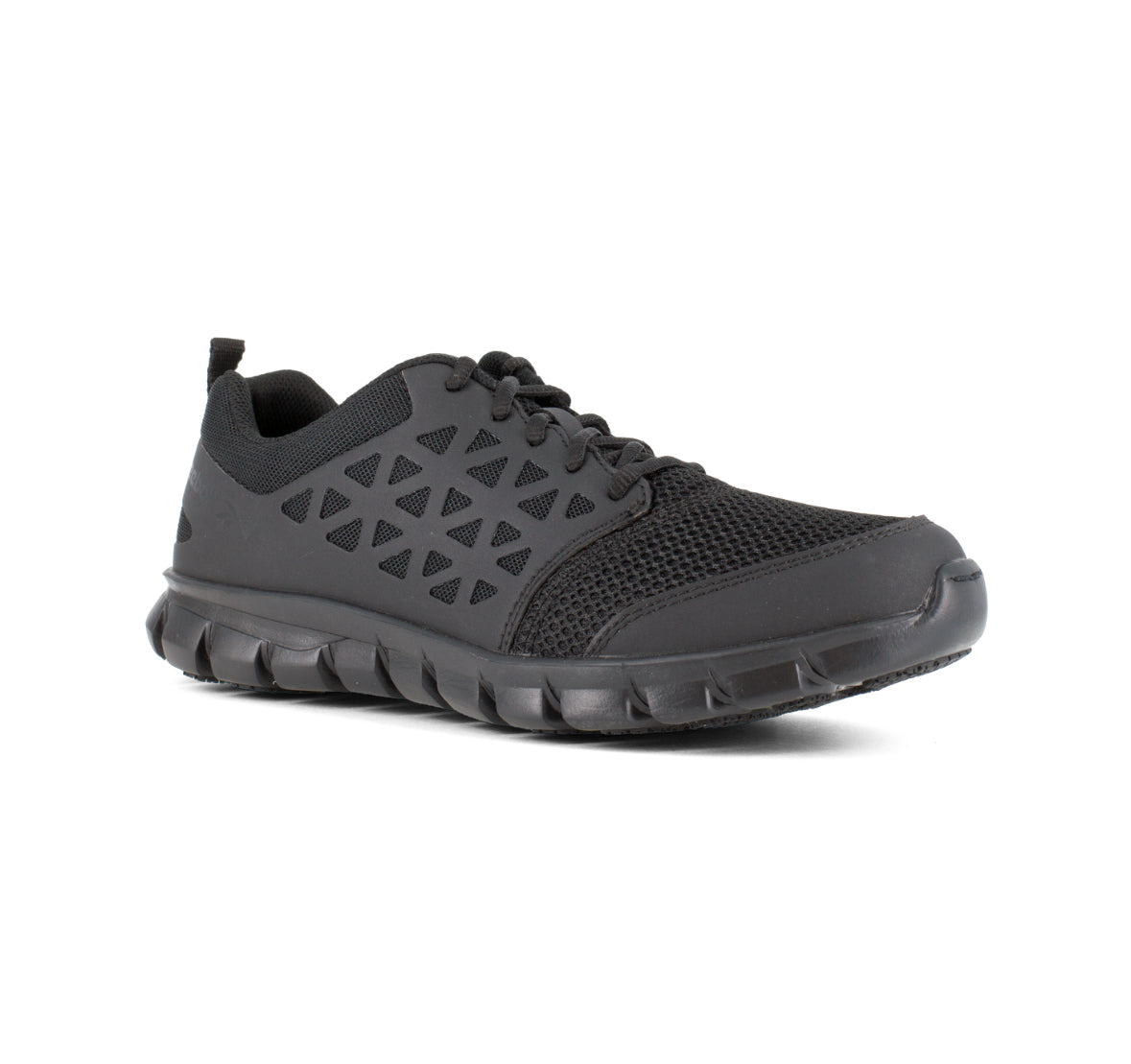 Sublite Cushion Work achieves maximum lightness and flexibility in a work shoe. With deep flex grooves, the Sublite foam midsole reduces weight and allows for greater range of motion. Rubber pads with a slip resistant tread pattern provide traction at heel strike and forefoot takeoff while minimizing weight. Mesh uppers allow for ultimate breathability and moisture transfer for all day cooling comfort. A MemoryTech Massage footbed adapts to the unique contours of your foot.